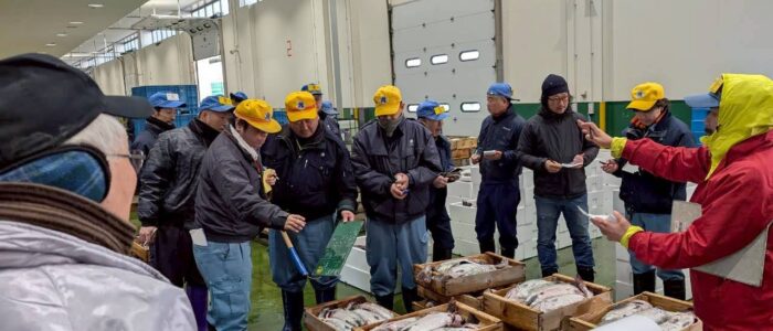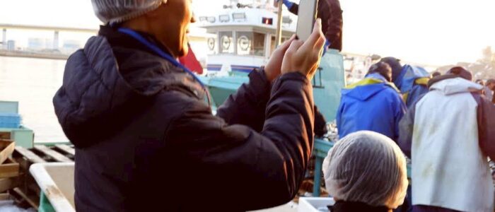 早朝6時半に港へ集合し、バスで魚市場へ移動。