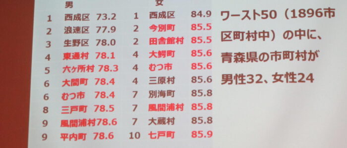 講演では、”短命県”という概念は、老年期のみらなず、「40代・50代」など、働き盛り世代の急逝も含まれるということを学びました。